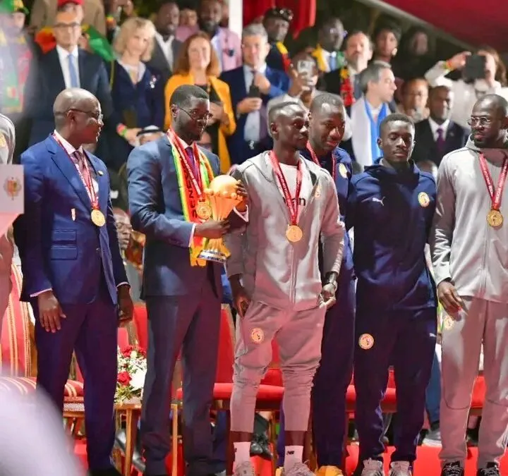 Le président Bassirou Diomaye Faye a honoré les Lions de la Téranga, champions d’Afrique 2025, lors d’une cérémonie au palais de la République. Chaque joueur a reçu une prime de 75 millions FCFA et un terrain de 1 500 m² sur la Petite-Côte. Les dirigeants de la Fédération sénégalaise de football ont bénéficié de 50 millions FCFA et d’un terrain de 1 000 m², tandis que les autres membres de la délégation ont obtenu 20 millions FCFA et 500 m². À travers ces distinctions, le chef de l’État a salué l’engagement et le sacrifice ayant conduit le Sénégal au sommet du football africain.